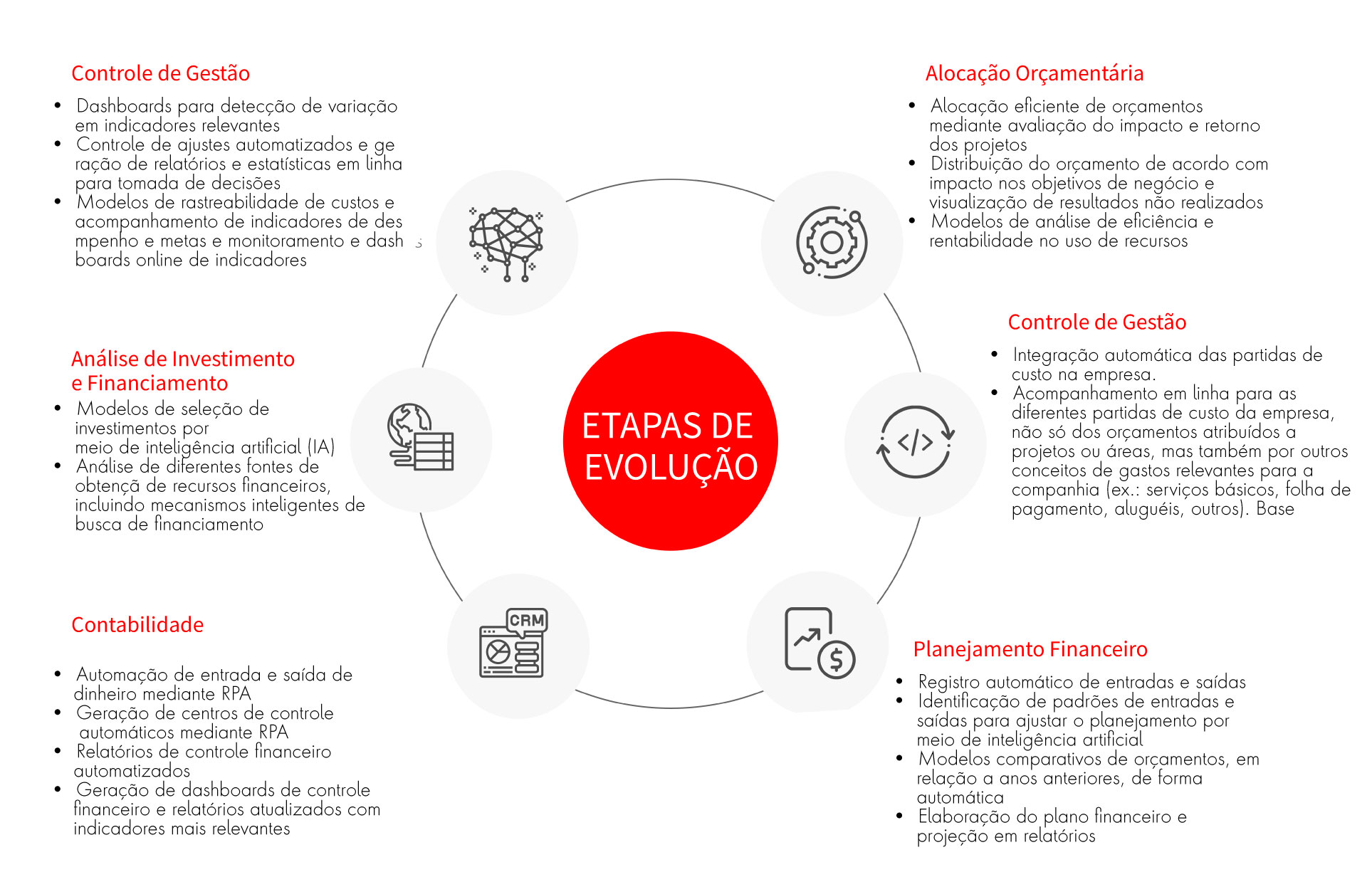 Há 20 anos oferecemos ao mercado latino-americano a melhor integração de equipes multidisciplinares (funcionais, técnicas e empresariais, entre outras). Somos especialistas na incorporação de novas tecnologias e na implementação de projetos de alto impacto organizacional. No processo, integramos diferentes disciplinas para conter os múltiplos riscos: de Tecnologia e Consultoria de Negócios à Gestão de Projetos, Garantia de Qualidade e Gestão da Mudança Organizacional, entre outros.